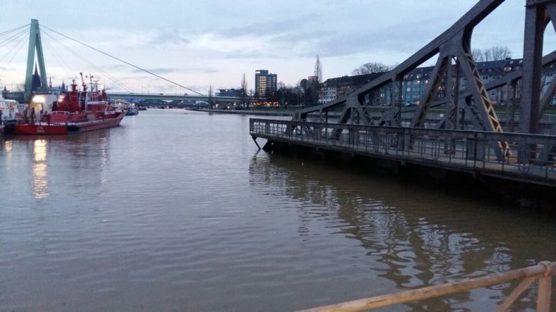 An der Drehbrücke hat die Kölner Berufsfeuerwehr seit 1994 ihre Löschboote stationiert. Die Wache war vorher im Bereich des heutigen Schokoladenmuseum am Rheinauhafen.